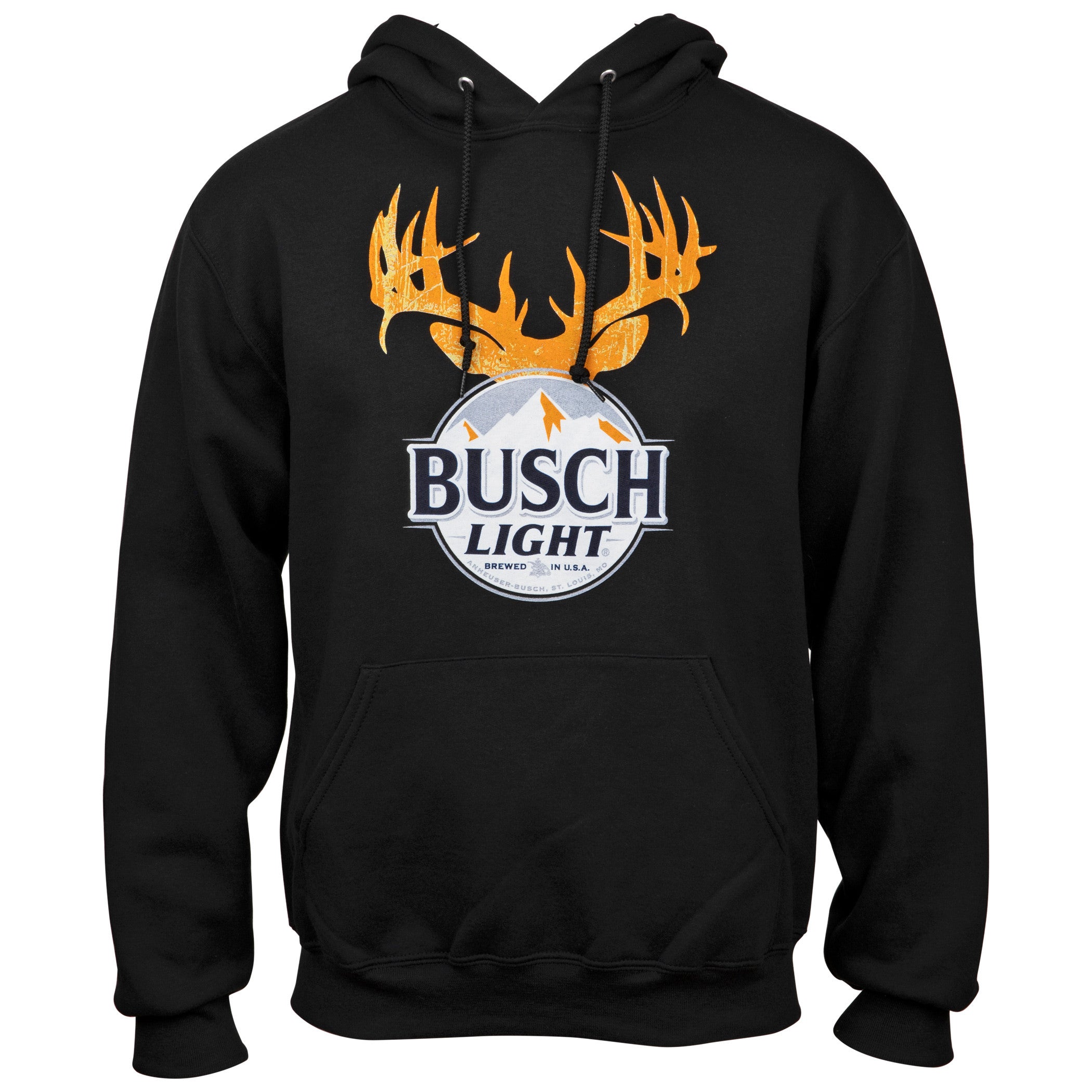 Officially licensed Busch Light Deer Antlers Hunter's Hoodie. Made from a cotton/polyester blend, this black "Busch Lite" pullover hunter's hoodie features the classic "Busch Light Deer Antlers" logo on the front.