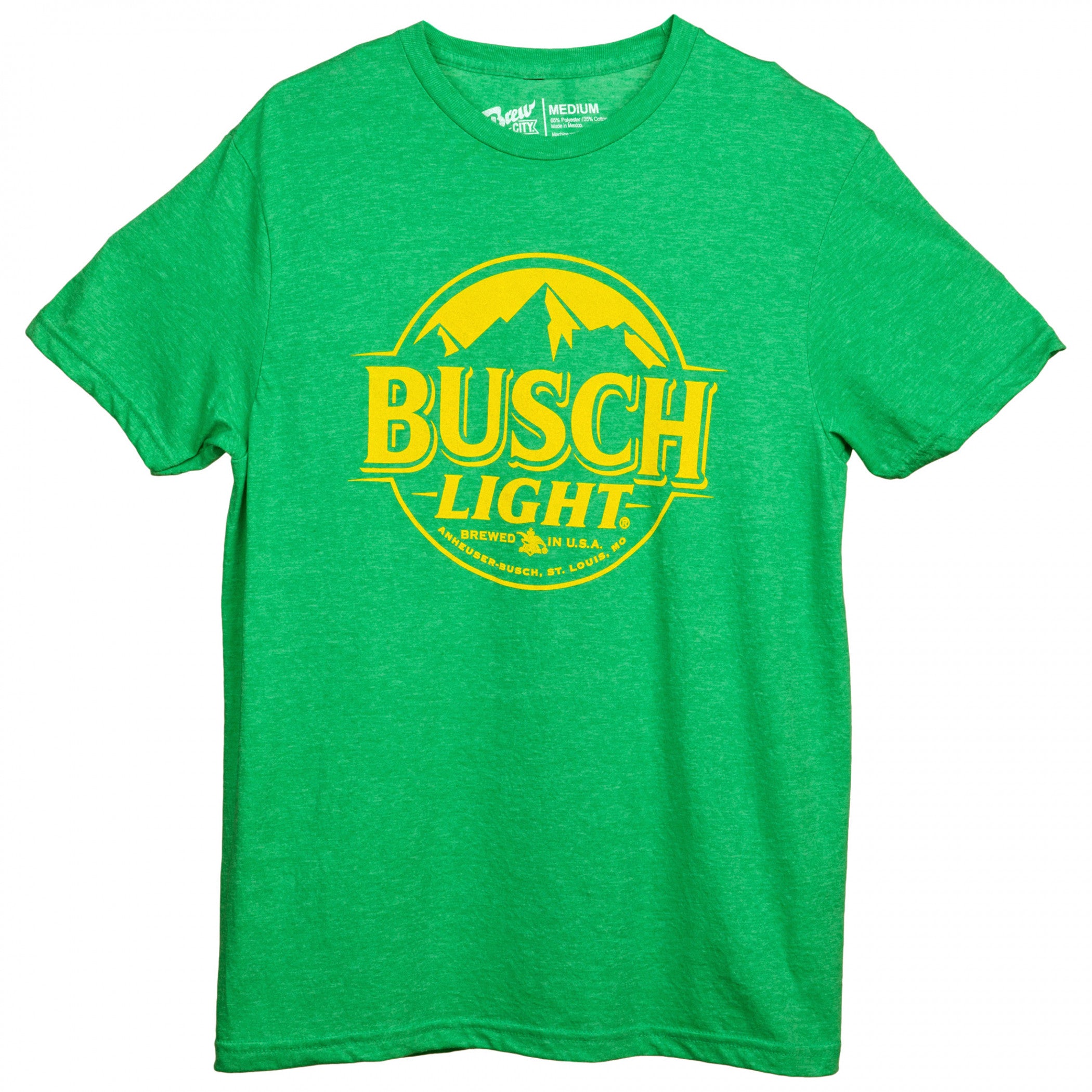 Officially licensed Busch Light For the Farmers Color Logo T-Shirt. This green "Busch Light" t-shirt is made from cotton and features the classic "Busch Light For the Farmers" yellow logo on the front.