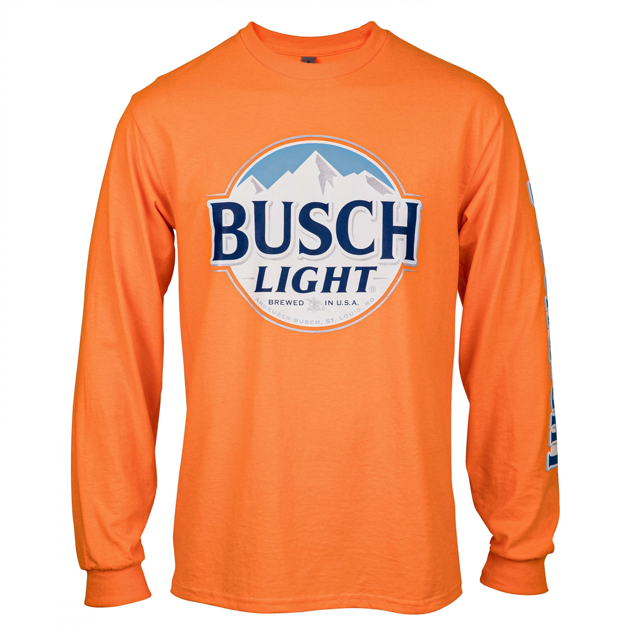 Officially licensed Busch Light Logo Hunter Orange Long Sleeve Shirt. This hunter orange "Busch Light" Long Sleeve Shirt is made from cotton and features the classic "Busch Light" logo printed on the front.