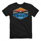 Officially licensed Busch Light Sunset at the Lake Front and Back Print T-Shirt. This black "Busch Light" t-shirt is made from cotton and features a fun "Busch Light" Sunset at the Lake logo design printed on the front and back.
