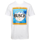 Officially licensed Busch Beer Jumbo Print Vintage Label T-Shirt. This white "Busch Beer" t-shirt is made from cotton and features a Jumbo Print "Busch Beer" Vintage Label design.