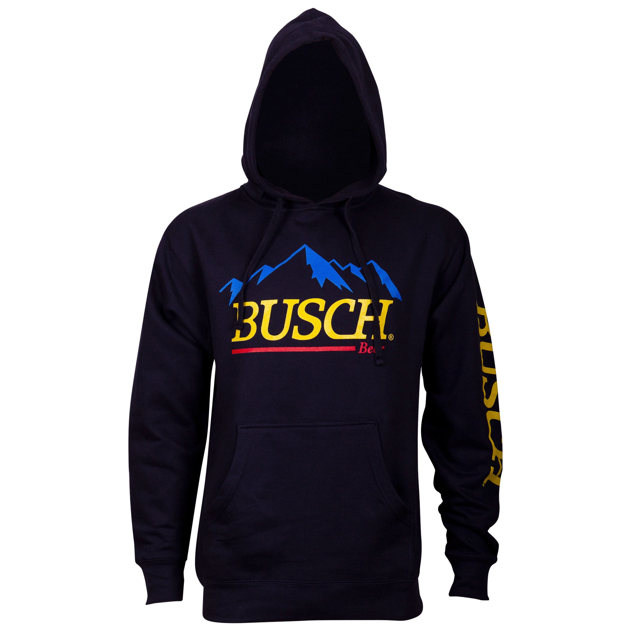 Officially licensed Busch Beer Mountain Logo men’s blue hoodie. Made from a cotton/polyester blend and features the authentic “Busch Beer Mountain” logo on the front.