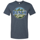 Officially licensed Busch Latte Camouflage Logo Blue T-Shirt. This blue t-shirt is made from a cotton/poly blend and features the "Busch Latte" camouflage logo on the front.