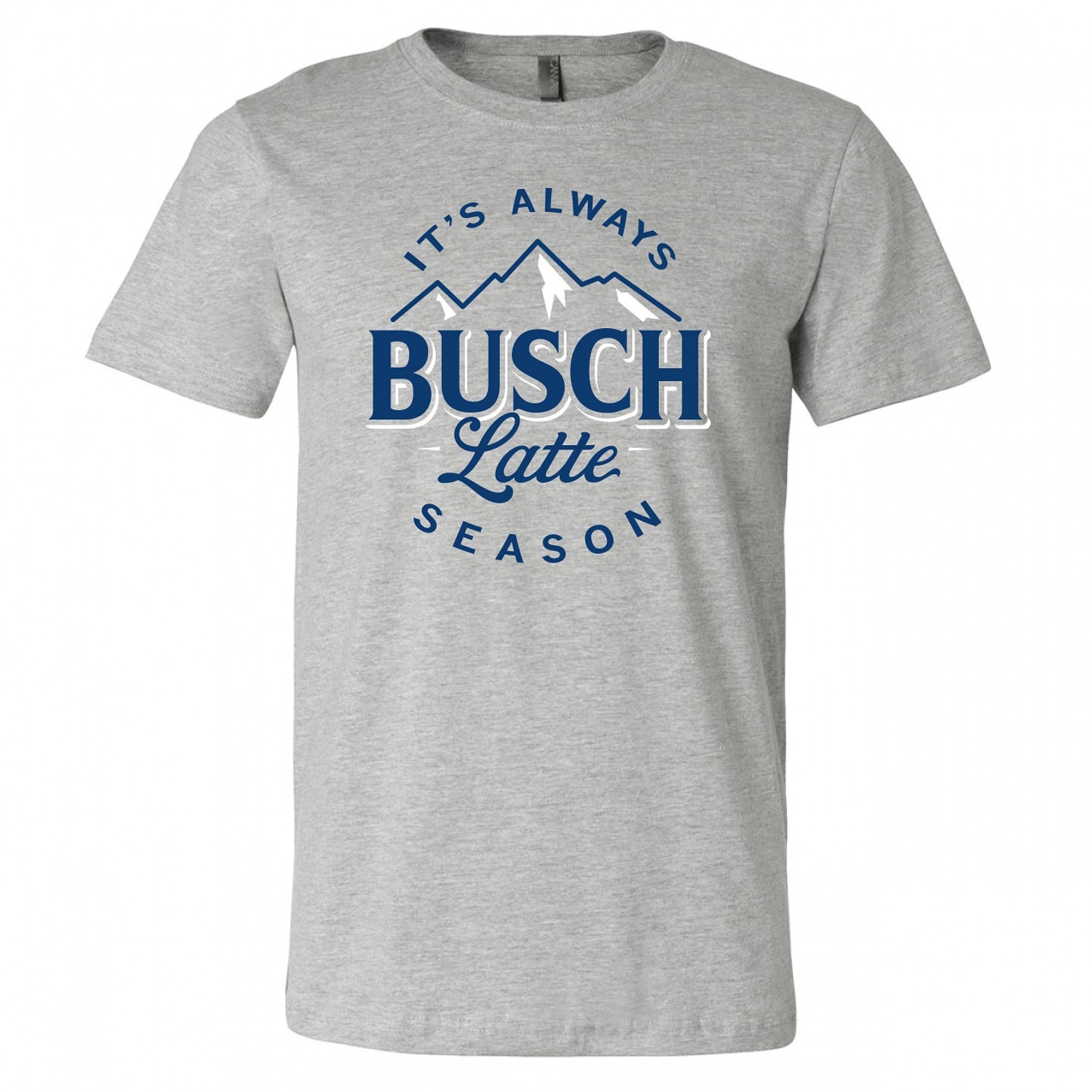 Officially licensed Busch Latte Season Men's T-Shirt. Made from 100% cotton, this grey t-shirt features the “Busch Latte” logo on the front.