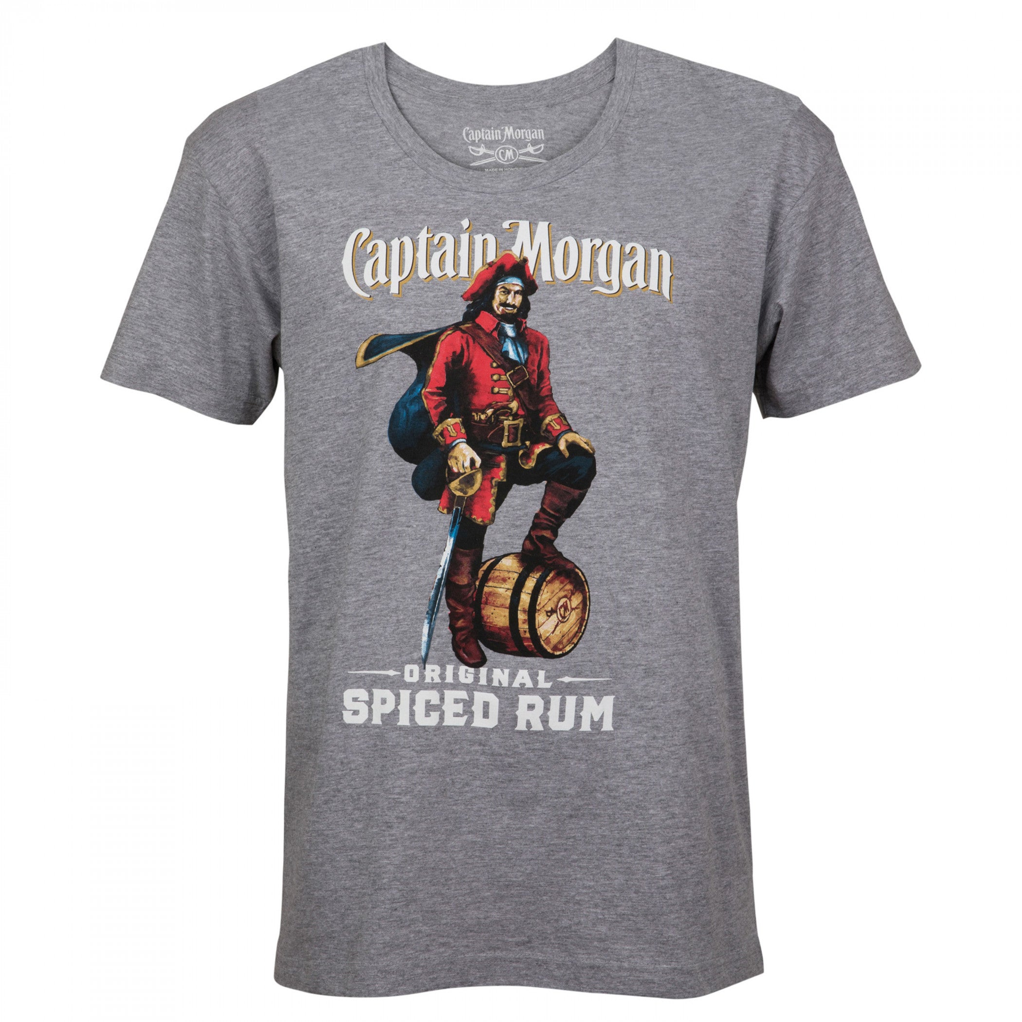 Men's grey Captain Morgan t-shirt. Made from a cotton/poly blend, this tee features an "Original Spiced Rum" logo on the front. Officially licensed.