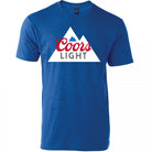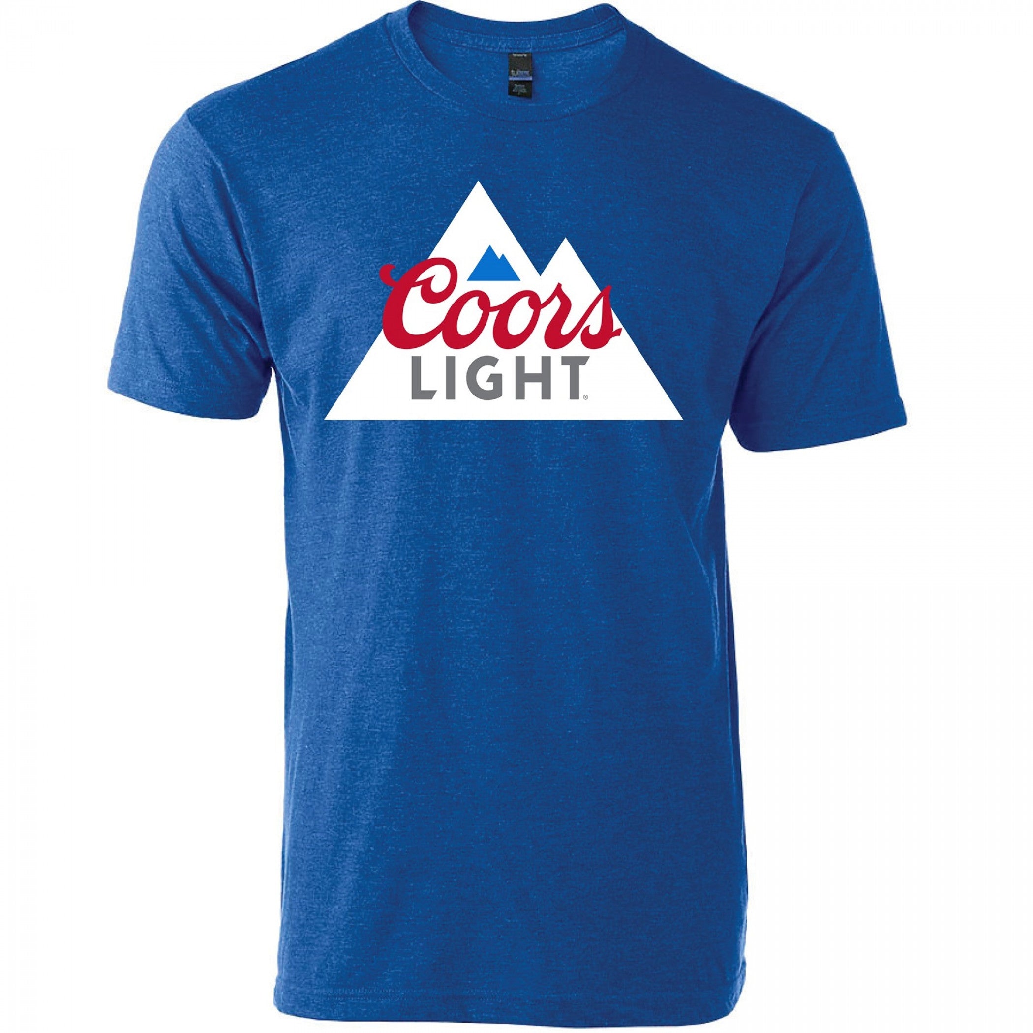 Officially licensed Coors Light Cold Mountains Logo T-Shirt. Made from cotton, this blue t-shirt features the classic "Coors Light" Cold Mountains logo design.
