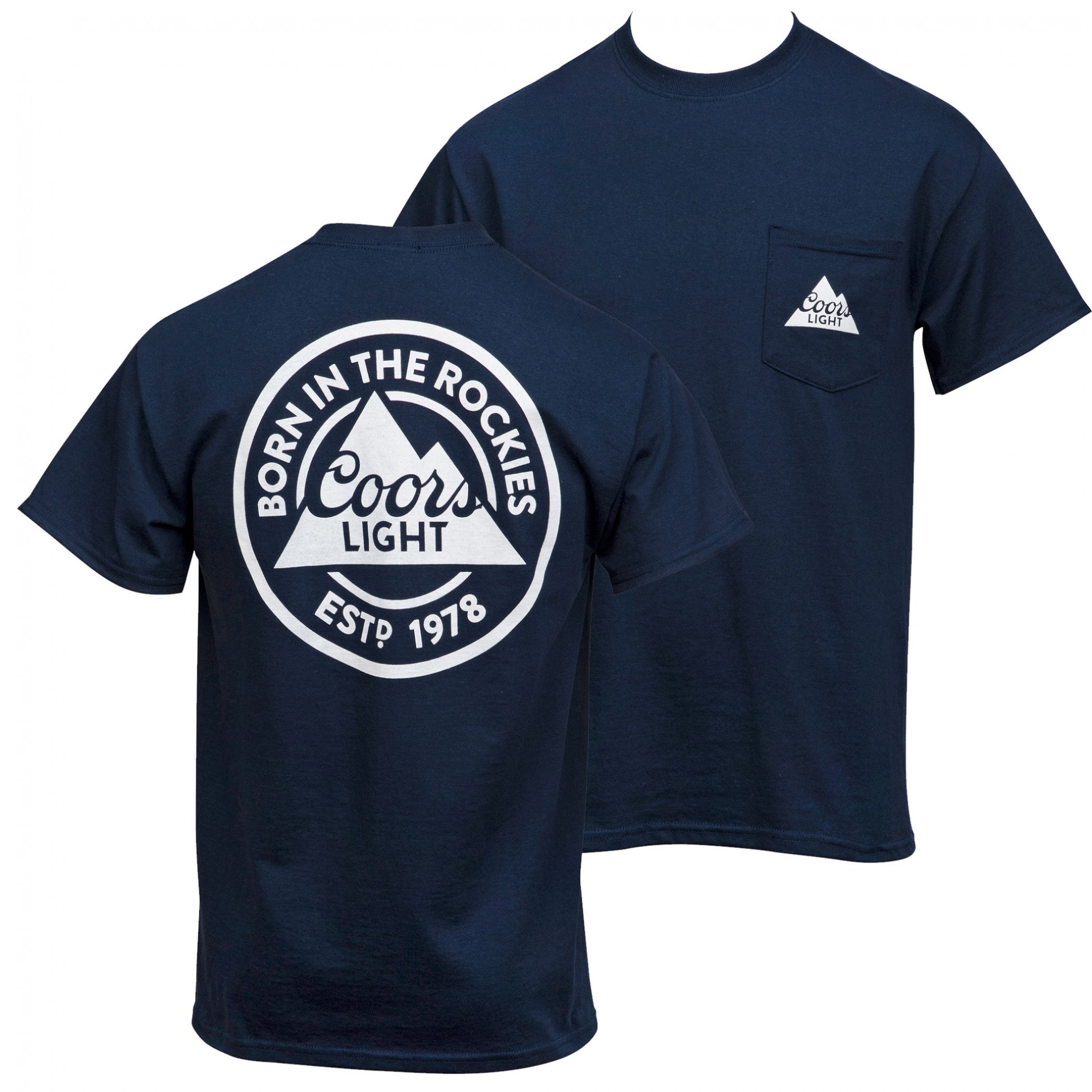 Officially licensed men's Coors Light Front and Back Logo Pocket Tee. Comes in blue and features a “Coors Light" logo on the front and back. Made from cotton.
