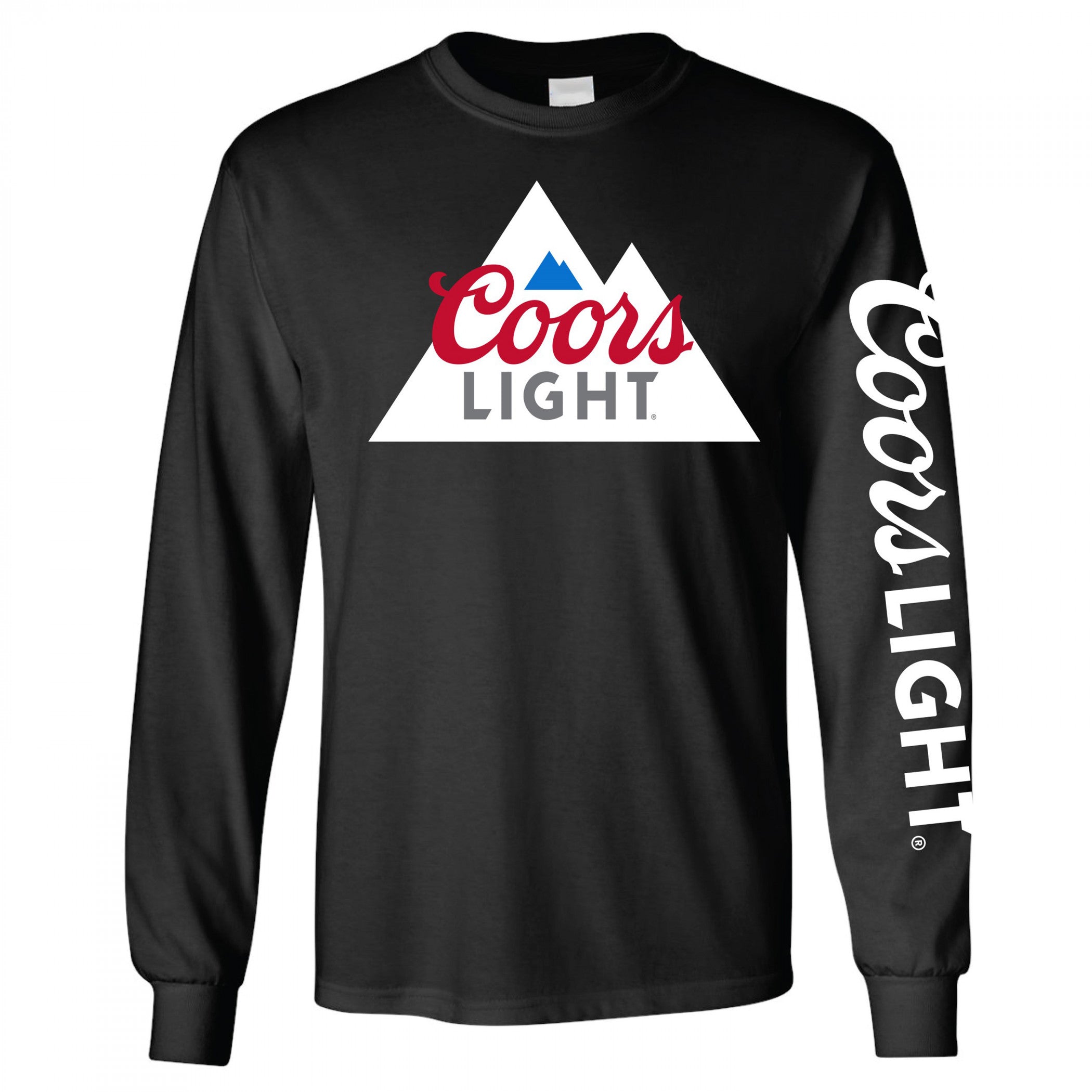 Officially licensed Coors Light Logo Black Long Sleeve Shirt. This black "Coors Light" Long Sleeve Shirt is made from cotton and features the classic "Coors Light" logo on the front and printed on the sleeve.