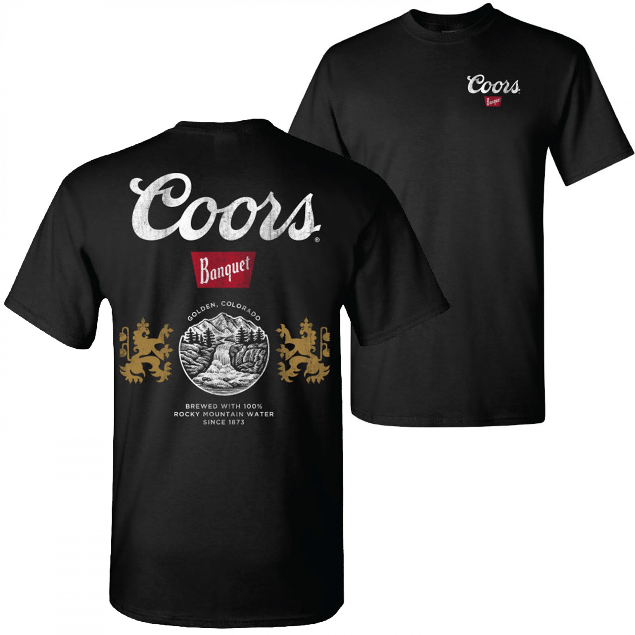 Coors Banquet Can Logo Front and Back Print Black T-Shirt