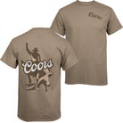 Officially licensed Coors Banquet Rodeo Bull Rider Front and Back Print T-Shirt. This brown "Coors Banquet" t-shirt is made from cotton and features a classic "Coors Banquet Rodeo" Bull Rider logo printed on the front and back.