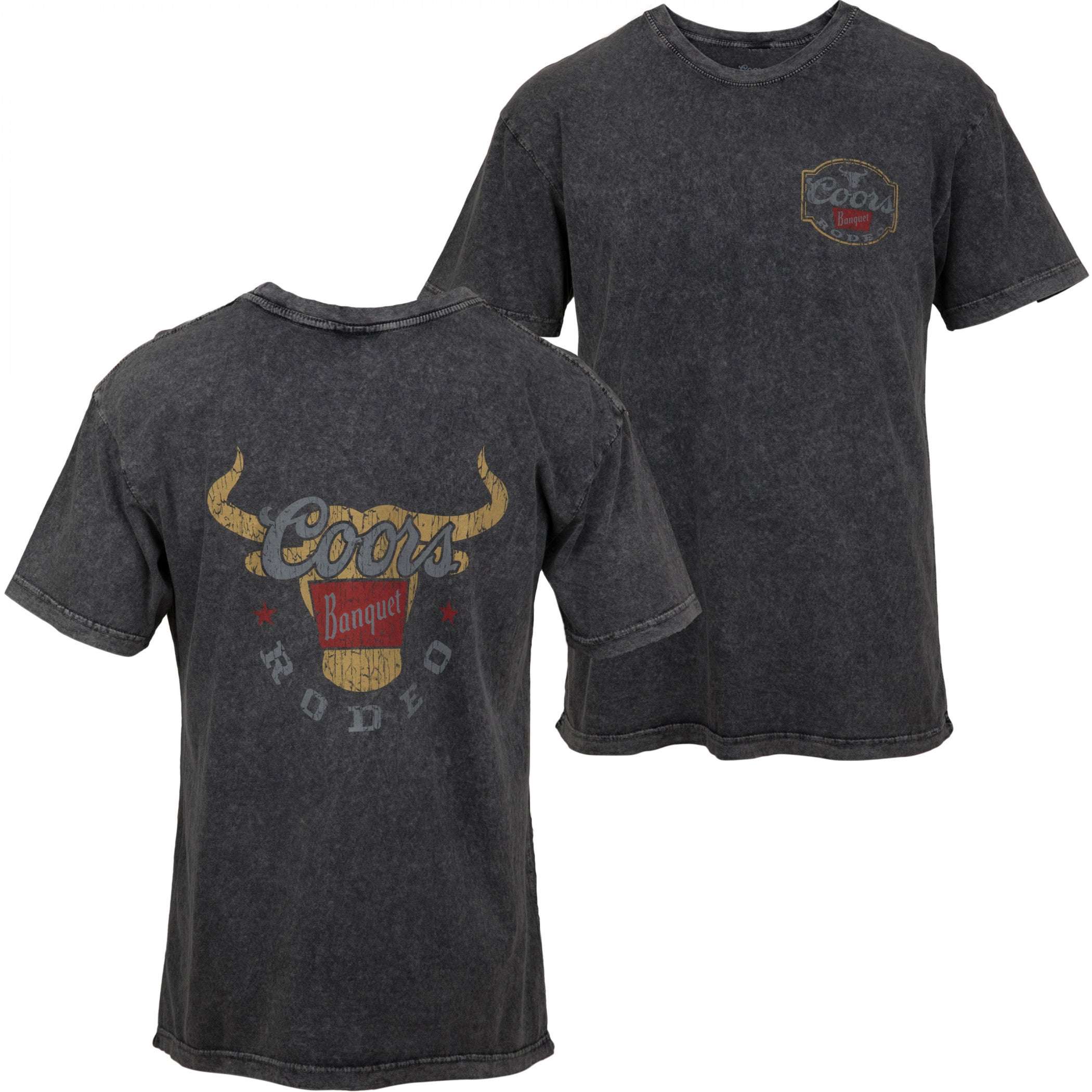 Coors Banquet Rodeo Long Horns Logo Distressed Front and Back T-Shirt
