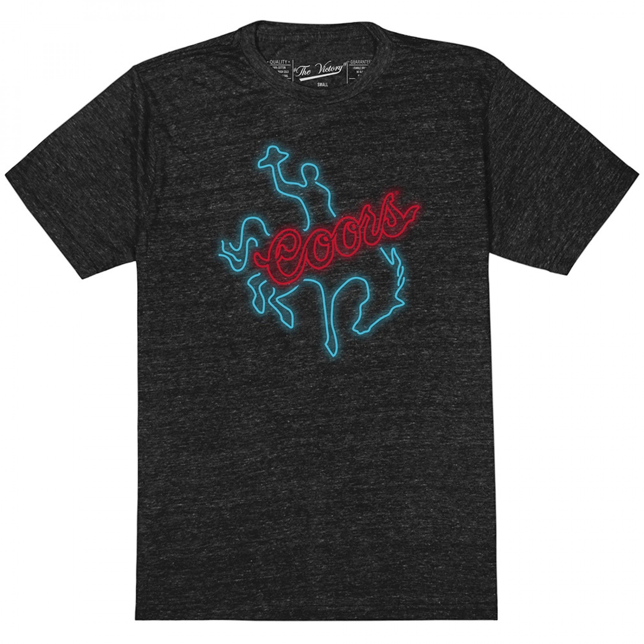 Officially licensed Coors Cowboy Neon Retro Style T-Shirt. This black "Coors" t-shirt is made from cotton and features a retro "Coors" Cowboy Neon logo design on the front.