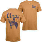 Officially licensed Coors Cowboy Print Front and Back Print T-Shirt. This orange "Coors" t-shirt is made from cotton and features a classic "Coors Cowboy Print" graphic and logo printed on the front and back.