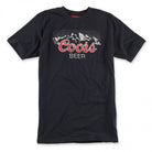 Officially licensed Coors Mountain Range Logo T-Shirt. This black "Coors" t-shirt is made from cotton and features a classic "Coors Mountain Range" logo design printed on the front.