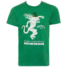 Men's green Fireball t-shirt. Made from a cotton/poly blend, this tee features the St. Patricks Day "Fireball" label with "Kiss The Dragon" written on the front. Officially licensed.