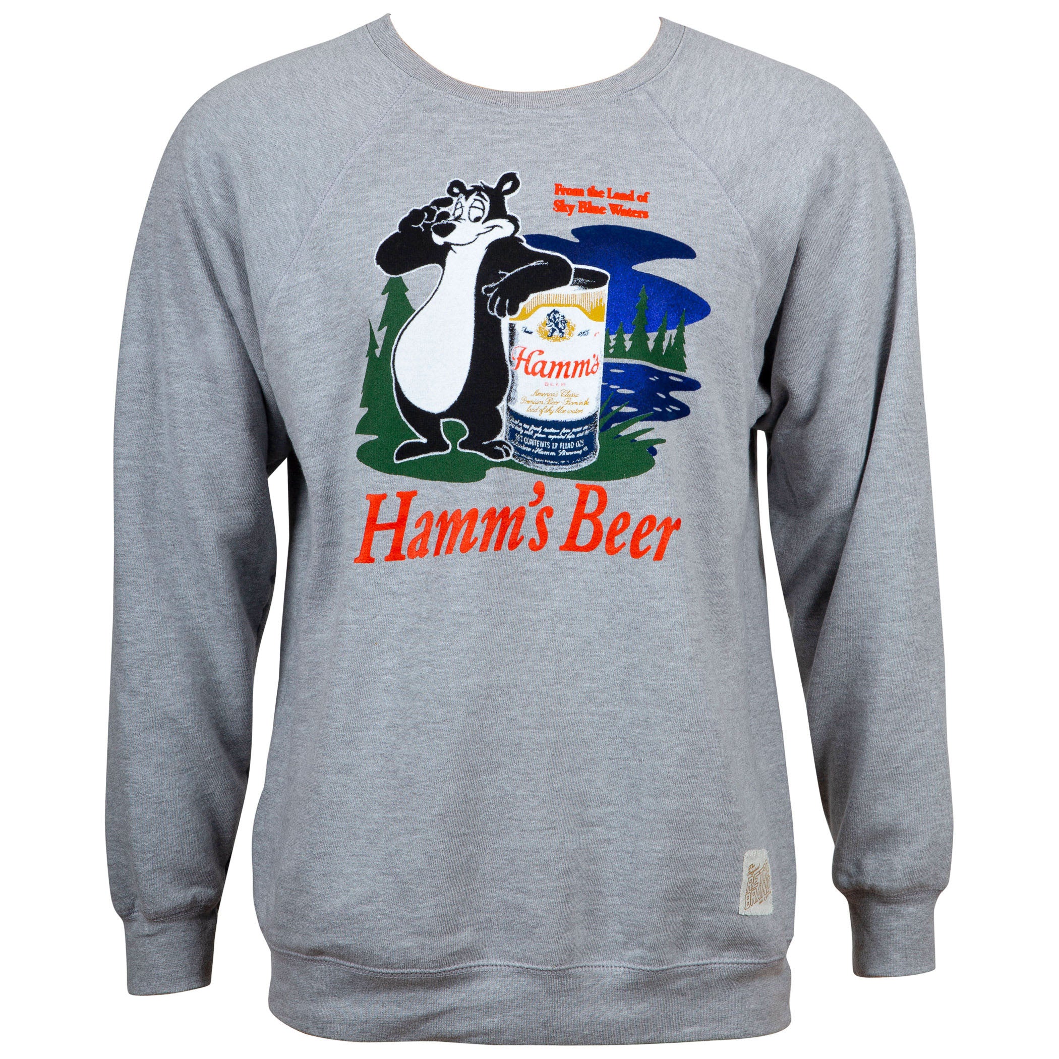 Officially licensed Hamm’s Beer men's retro sweatshirt. Comes in heather grey and features the retro “Hamm’s Beer Bear" logo on the front. Made from a blend of cotton and polyester.