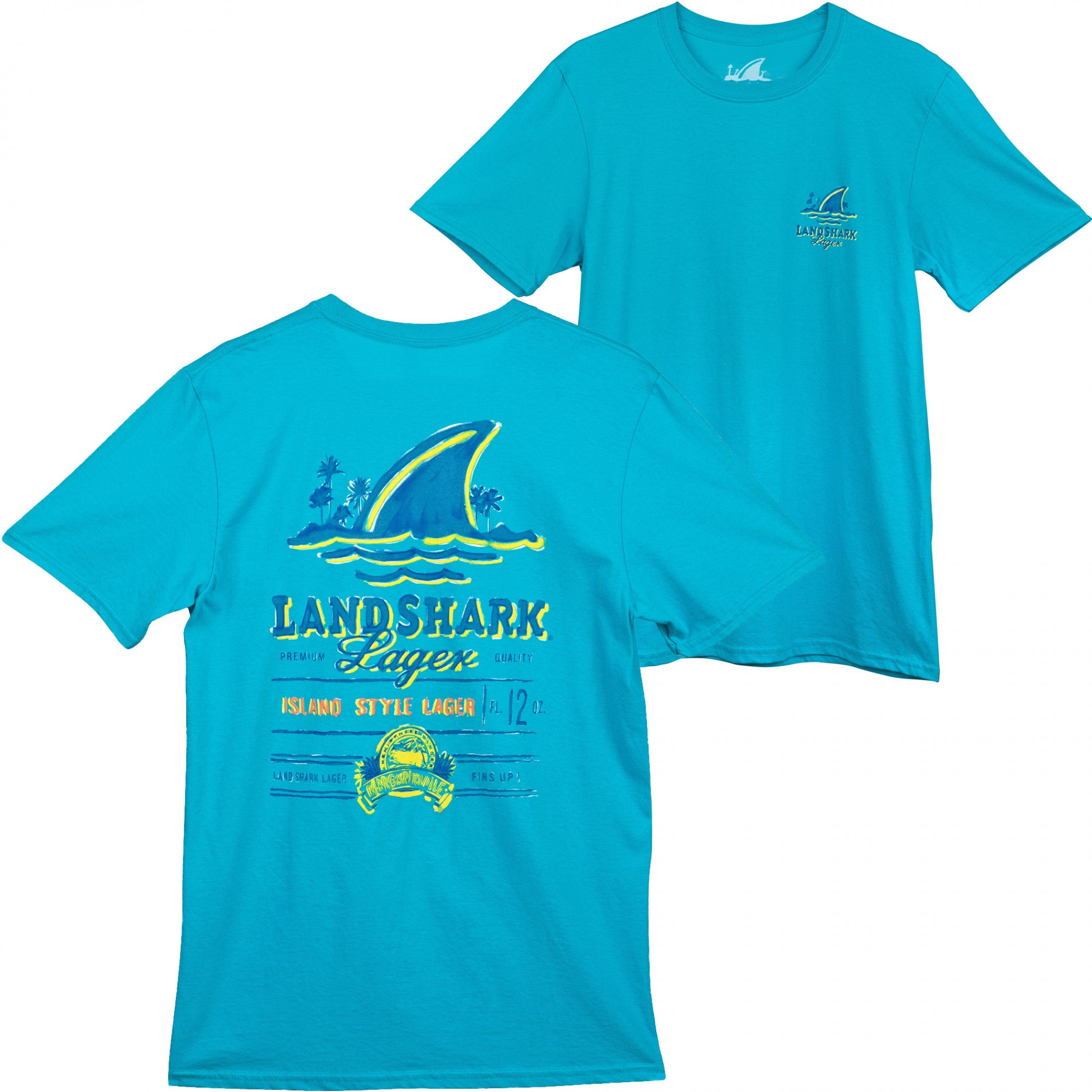 Officially licensed Landshark Island Style Lager Tropical Front/Back T-Shirt. This blue "Landshark" t-shirt is made from cotton and features a cool "Landshark Island Style Lager Sunshine" logo printed on the front and back.