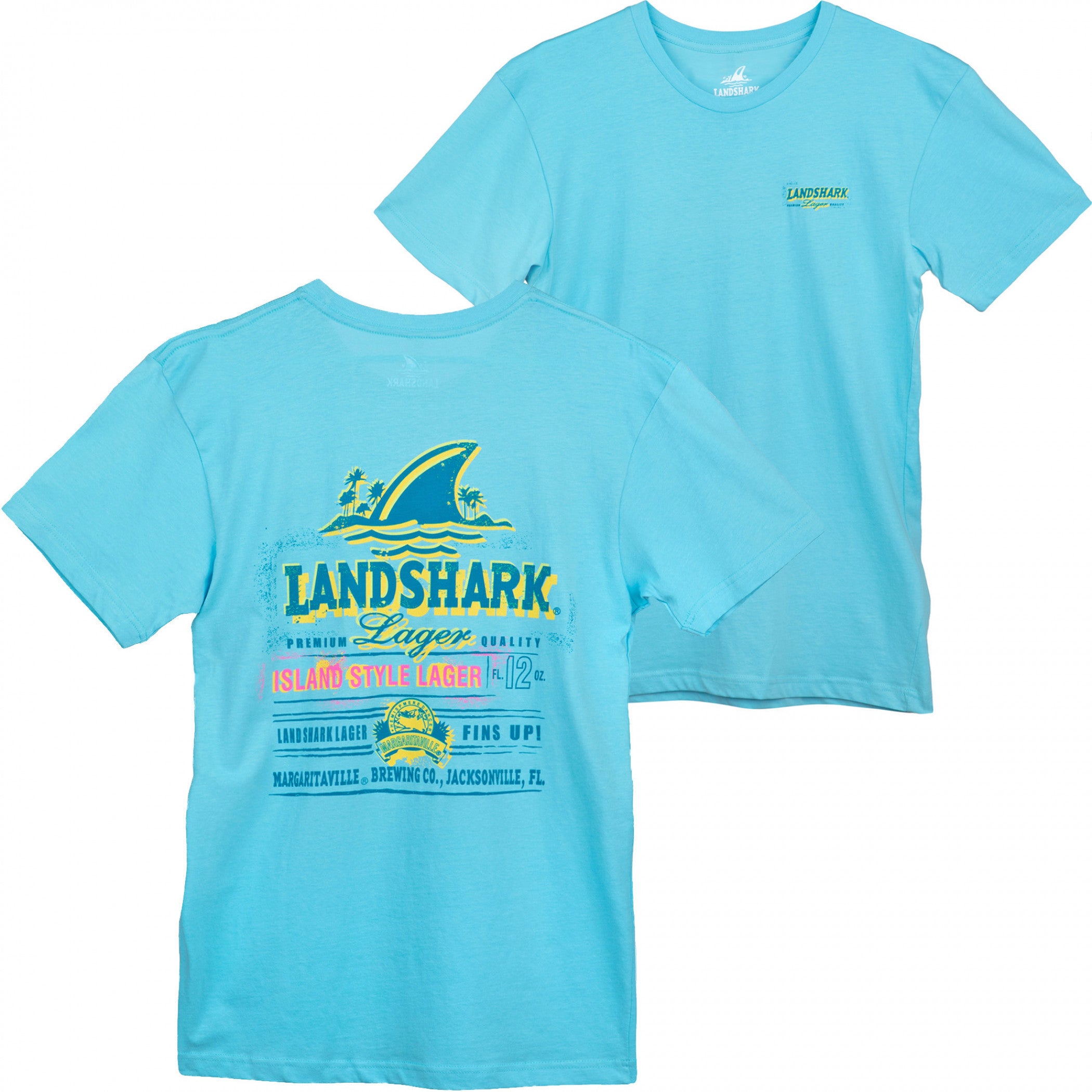 Officially licensed Landshark t-shirt. Comes in aqua with a small "Landshark" logo on the front and big one on the back. Made from 100% cotton.