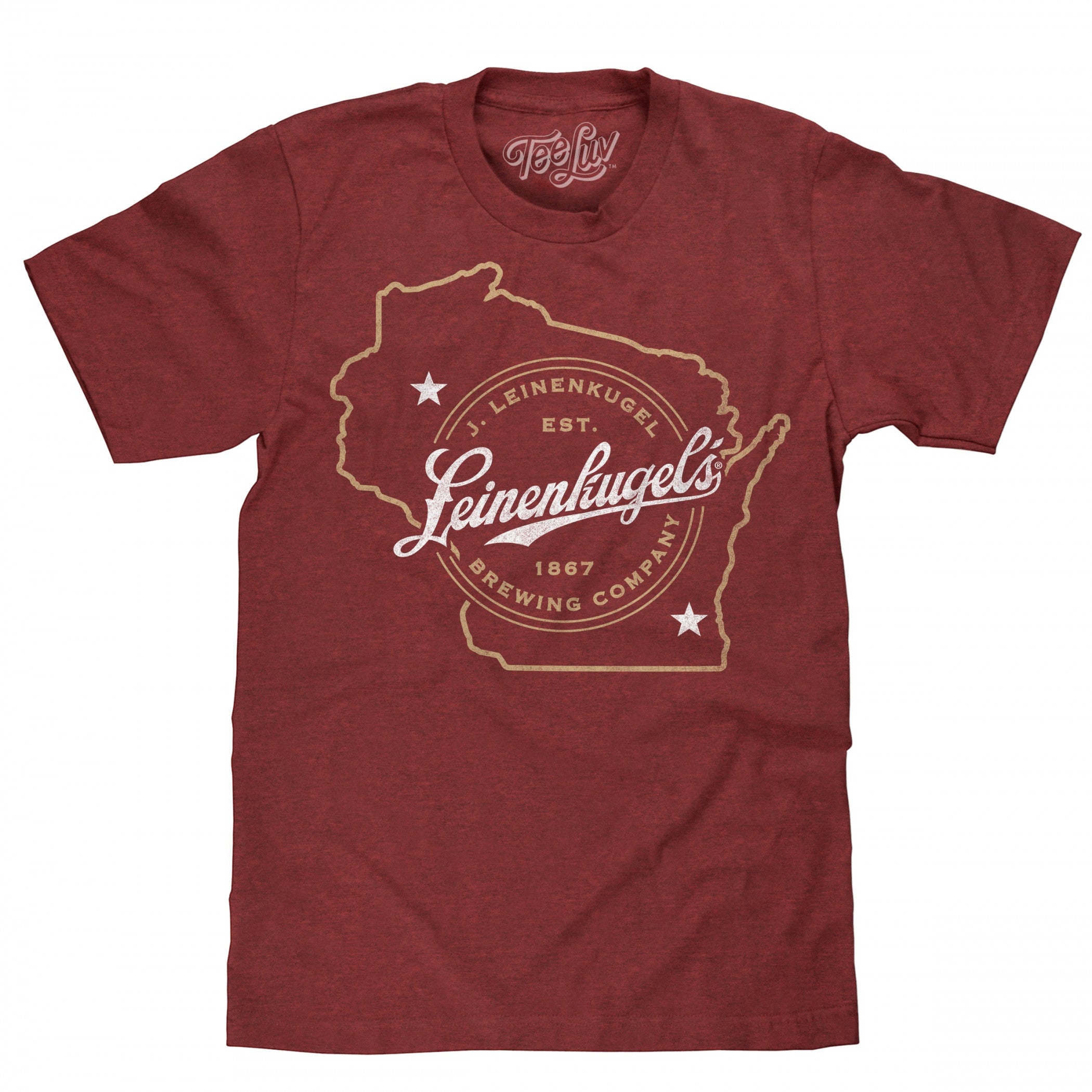 Officially licensed Leinenkugel Wisconsin Beer T-Shirt. This red "Leinenkugel" t-shirt is made from cotton and features a classic "Leinenkugel Wisconsin Beer" logo printed on the front.