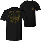Officially licensed Lone Star Beer Always Texan Front and Back Print T-Shirt. this black "Lone Star Beer" t-shirt is made from cotton and features the "Lone Star Beer Always Texan" logo printed on the front and on the back.
