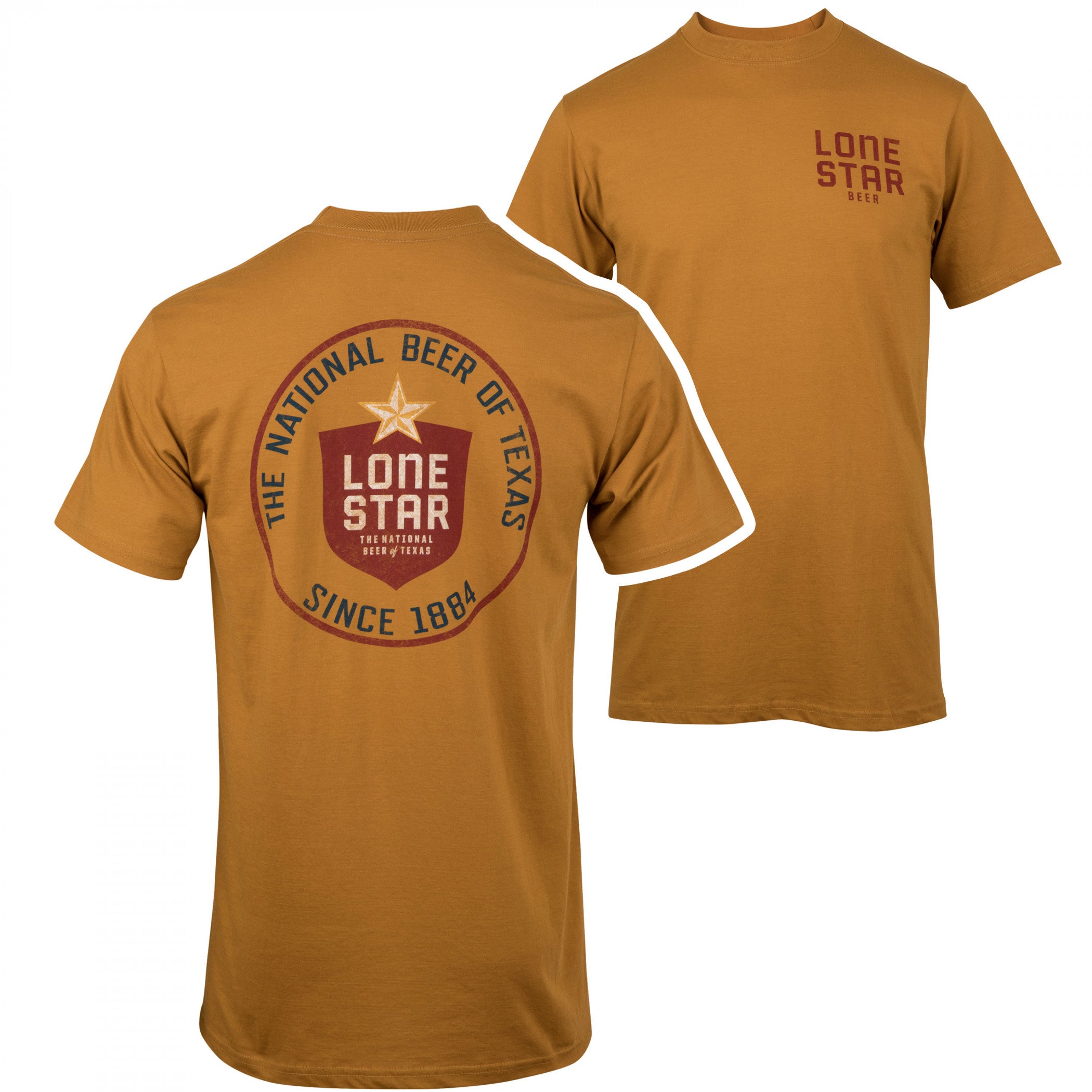 Officially licensed Lone Star Beer Round Logo Front and Back Print T-Shirt. This orange "Lone Star Beer" t-shirt is made from cotton and features an awesome "Lone Star Beer" round logo design printed on the front and back.