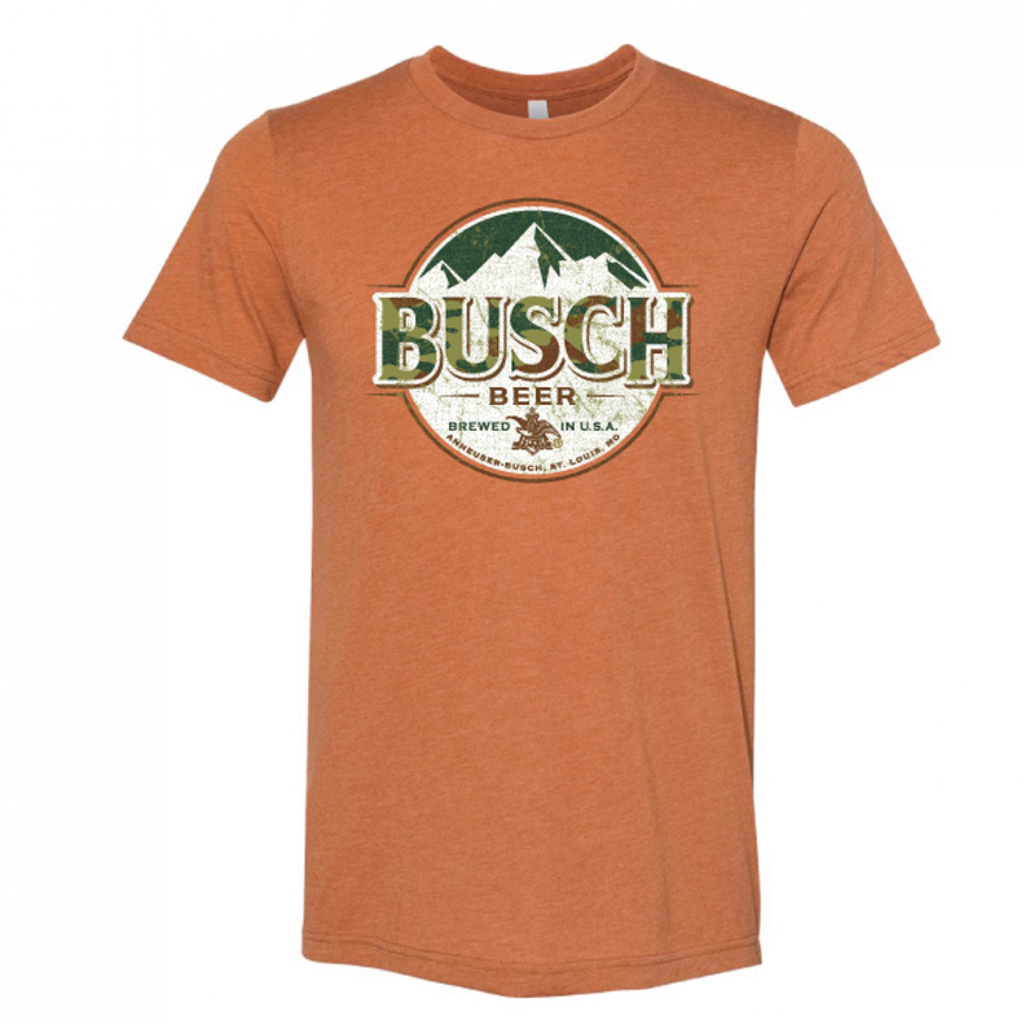 Officially licensed Busch Beer Camo Logo Hunter Orange T-Shirt. Made from a cotton/poly blend and features the "Busch Beer" camo logo on an "hunter" orange t-shirt.