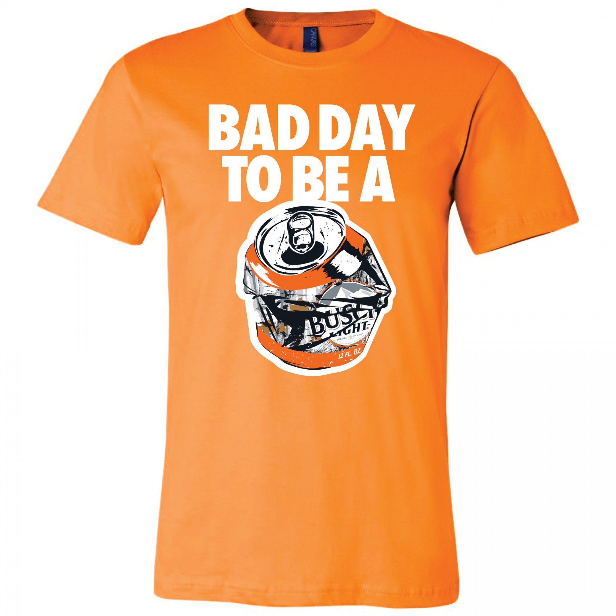 Officially licensed Busch Light Bad Day to Be a Can Orange Colorway T-Shirt. This "Busch Light" Orange Colorway T-Shirt is made from cotton and features a "Busch Light Bad Day to Be a Can" design on the front.