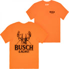 Officially licensed Busch Light Blaze Buck Front and Back Print T-Shirt. This blaze orange "Busch Light" t-shirt is made from super soft, 100% preshrunk combed ringspun cotton jersey (4.3 oz., 30/1’s) and features the classic "Busch Light" logo on the front with a "Busch Light" Blaze Buck graphic printed on the back.