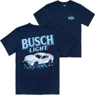 Officially licensed Busch Light Racing Car Front and Back Print T-Shirt This "Busch Light" blue t-shirt is made from cotton and features high-speed racing graphics with front and back "Busch Light"