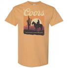 Officially licensed Coors Golden Colorado Western Sunset T-Shirt. This yellow "Coors" t-shirt is made from cotton and feature a classic "Coors" Golden Colorado Western Sunset logo design printed on the front.