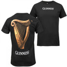 Officially licensed Guinness Harp Logo Front and Back Print T-Shirt. This black "Guinness" t-shirt is made from cotton and features a classic "Guinness" Harp logo printed on the front and back.
