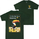 Officially licensed Guinness - Lovely Day for a Guinness Toucan Front and Back T-Shirt. This green "Guinness" t-shirt is made from cotton and features the classic "Lovely Day for a Guinness" Toucan logo printed on the front and the back.