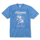 Officially licensed Hamm's Beer From the Land of Sky Blue Waters T-Shirt. This blue "Hamm's Beer" t-shirt is made from 100% cotton and features a classic "Hamm's Beer From the Land of Sky Blue Waters" logo design printed on the front.