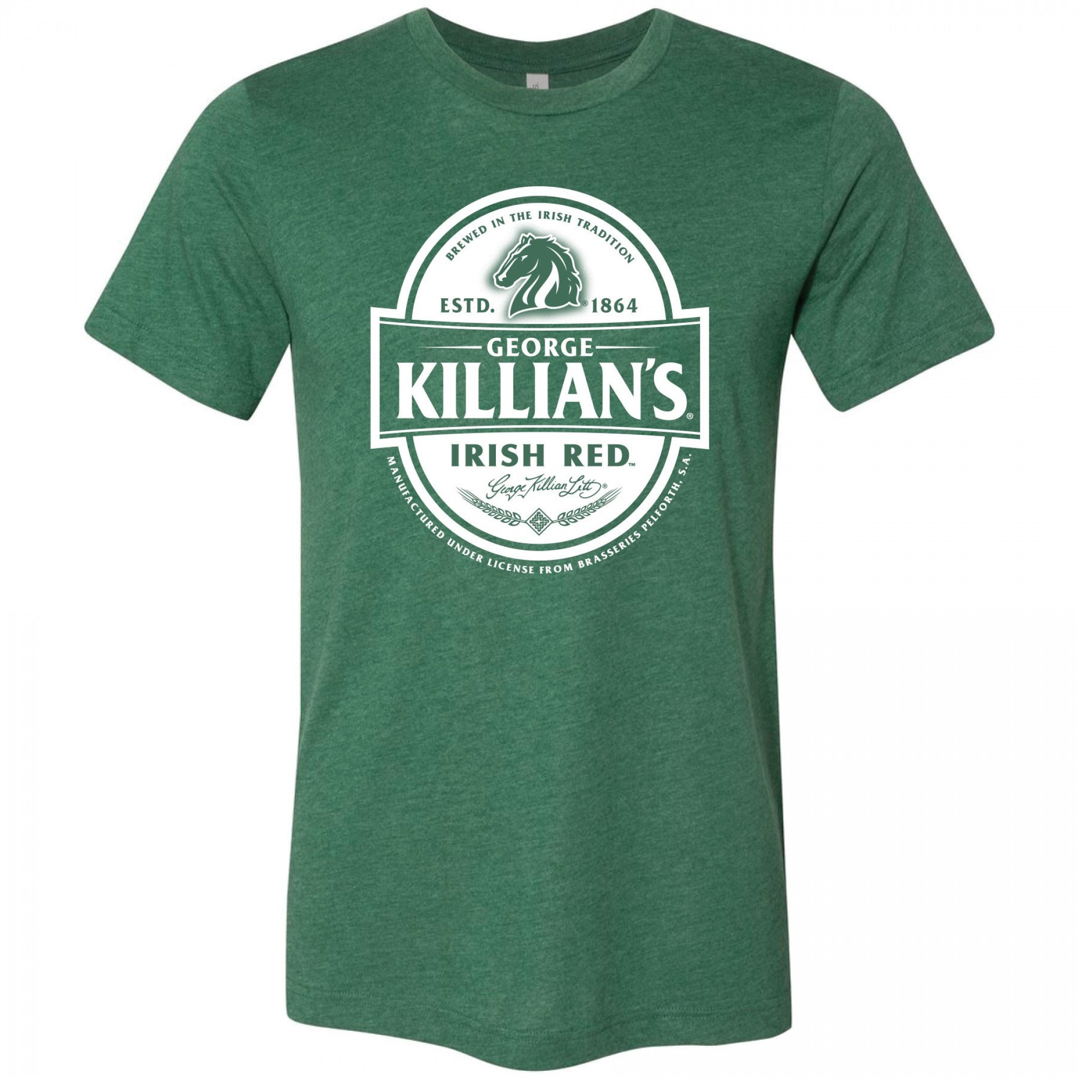 Officially licensed Killian's Irish Red Label St. Patrick's T-Shirt. This green "Killian's" T-Shirt is made from cotton and features the classic "Killian's Irish Red Label St. Patrick's Day" logo on the front.