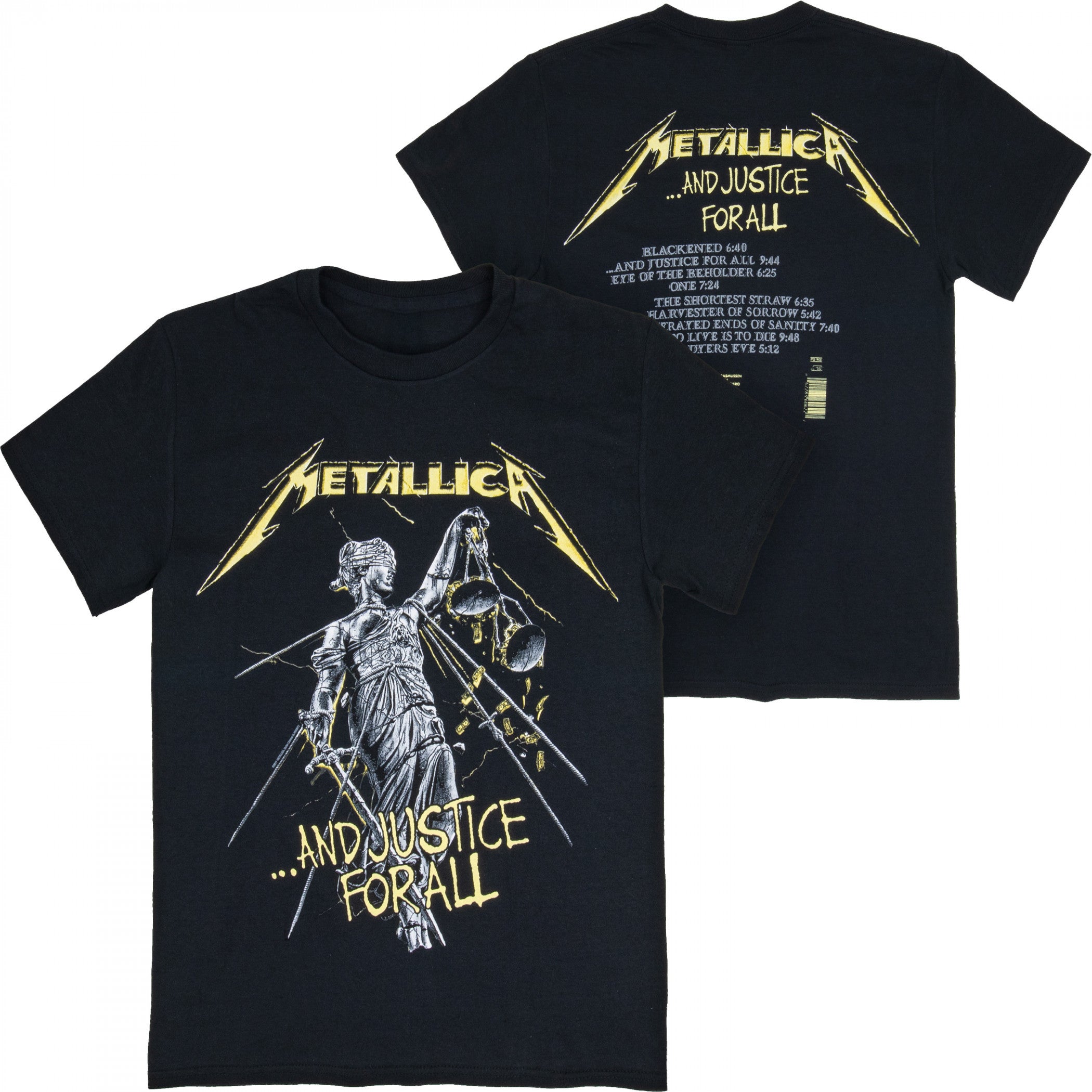 Officially licensed Metallica And Justice For All Track List Front and Back Print T-Shirt. This black "Metallica" t-shirt is made from cotton and features a classic "Metallica And Justice For All" Track List and logo design printed on the front and back.