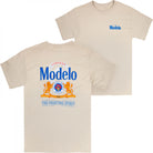 Officially licensed Modelo The Fighting Spirit Front and Back Logo T-Shirt. This tan "Modelo" t-shirt is made from cotton and features a scenic "Modelo" The Fighting Spirit logo design printed on the front and back.
