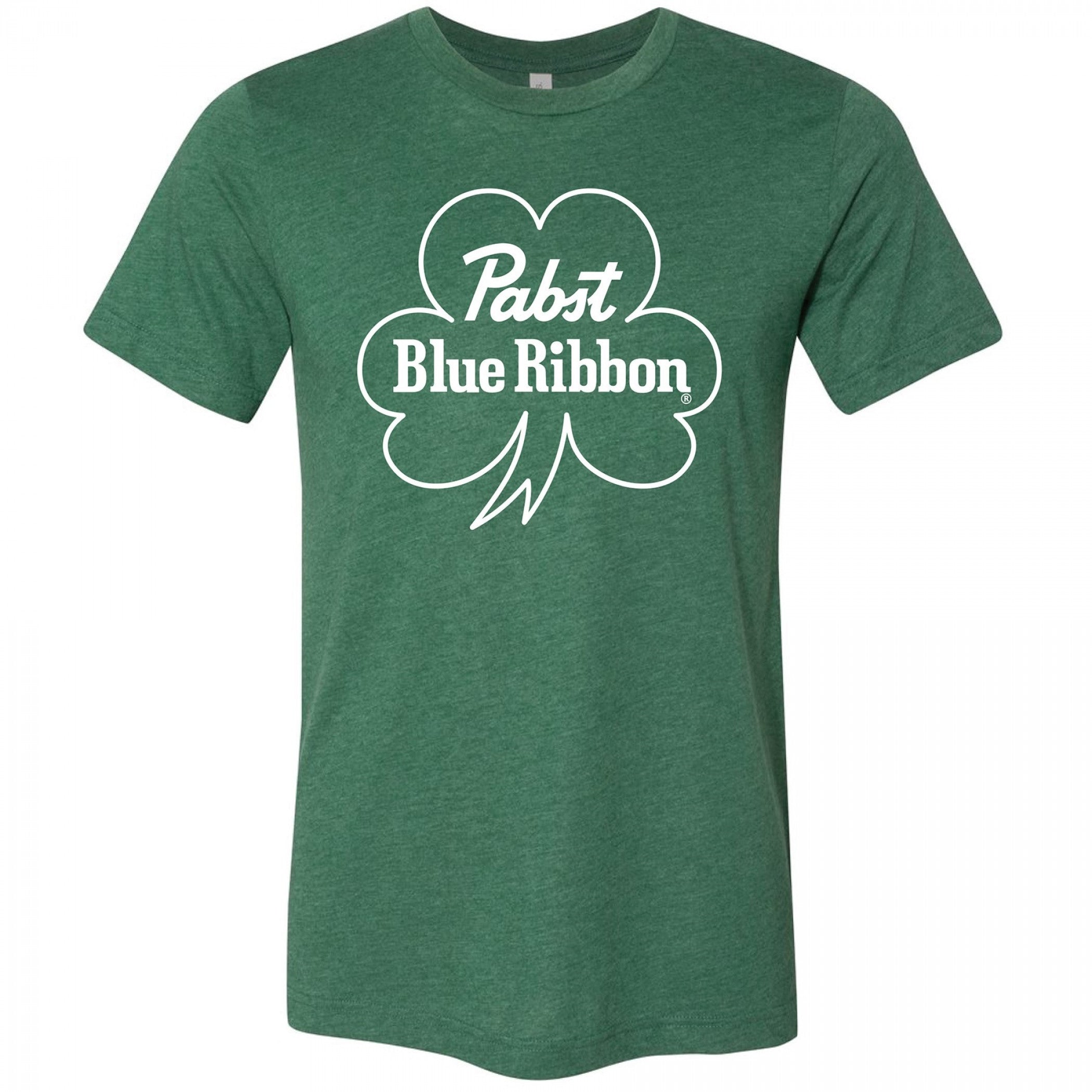Officially licensed Pabst Blue Ribbon Text Logo with Shamrock Saint Patrick's Day T-Shirt. This green t-shirt is made from cotton and features the authentic "Pabst Blue Ribbon" logo with Shamrock St. Patrick's Day design.