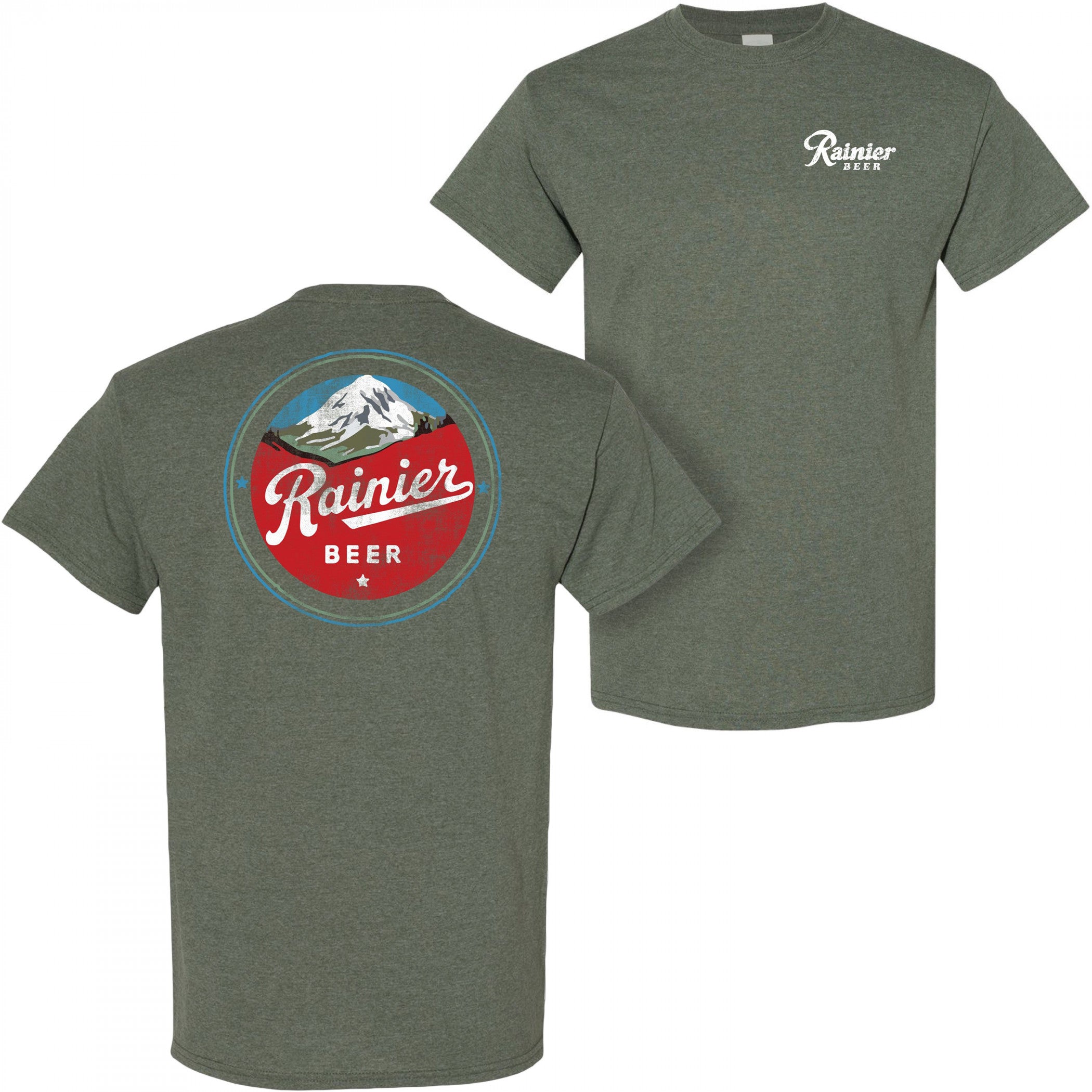 Rainier Beer Distressed Mountain Logo Front and Back T-Shirt
