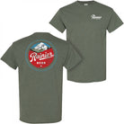 Officially licensed Rainier Beer Distressed Mountain Logo Front and Back T-Shirt. This green "Rainier Beer" t-shirt is made from cotton and features a distressed "Rainier Beer" Mountain Logo printed on the front and the back.