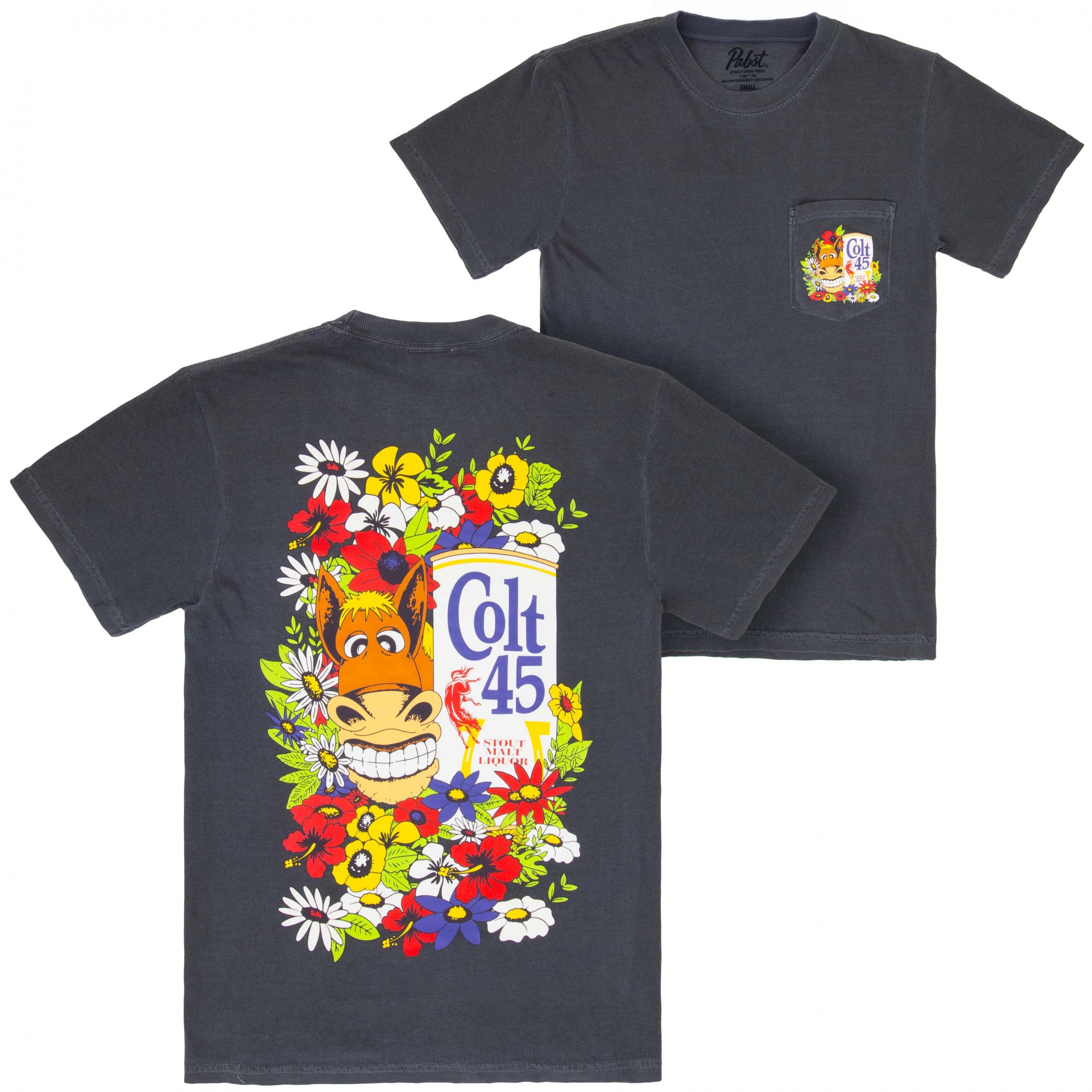 Colt 45 Floral Black Front and Back Print T-Shirt