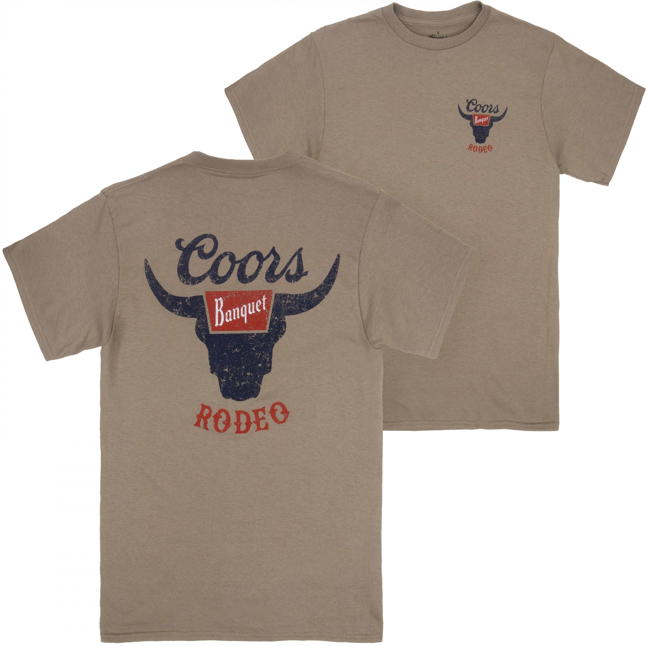 Coors Banquet Rodeo Logo Distressed Front and Back Tan T-Shirt