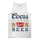 Officially licensed Coors Golden Banquet Bold Logo Tank Top. This white "Coors Golden Banquet" tank top is made from cotton and features a classic "Coors Golden Banquet" bold logo design printed on the front and back.