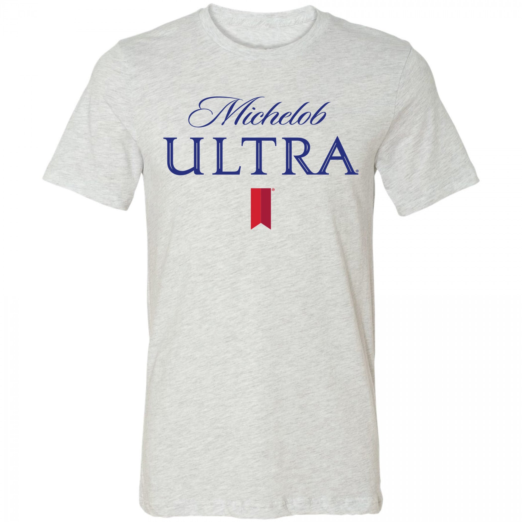 Officially licensed Michelob Ultra Logo T-Shirt. Made from 100% cotton, this grey t-shirt features the "Michelob Ultra" logo on the front.