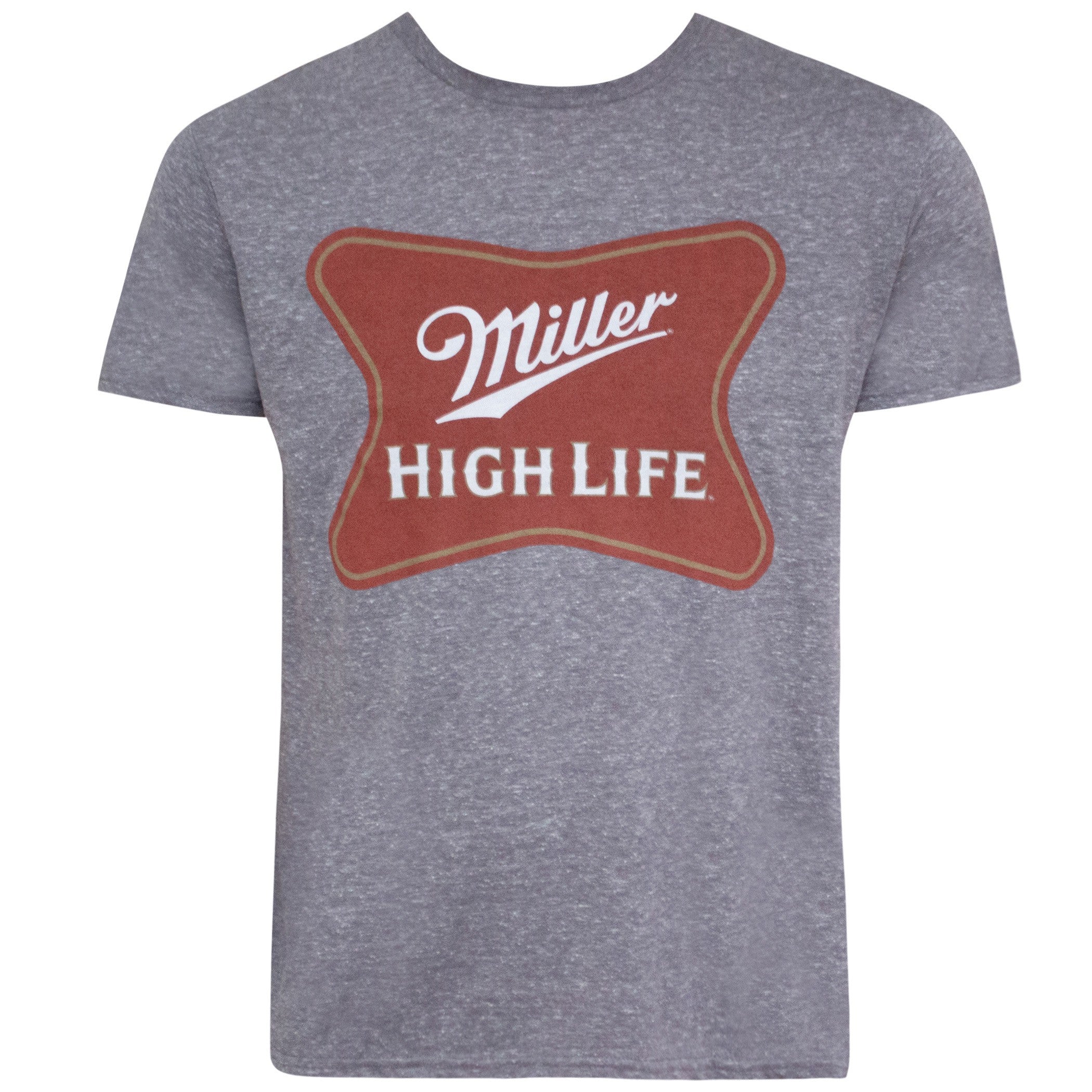 Men's grey Miller High Life t-shirt. Made from a cotton polyester blend, this tee features the "Miller High Life" logo on the front. Officially licensed.