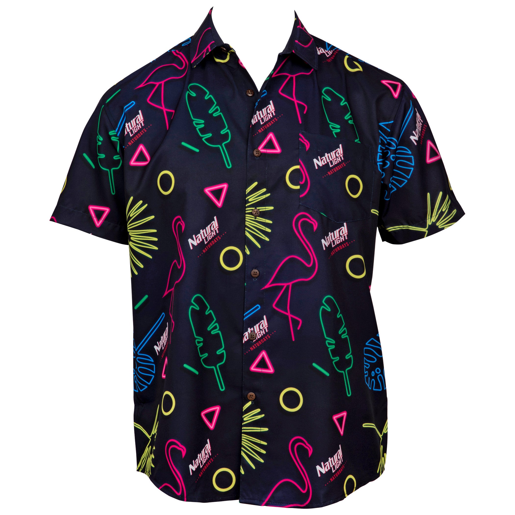 We teamed up with Natural Light and ***NATURDAYS*** to give you the best of the best - limited edition **Natural Light** Retro Tropical Bros. Hawaiian Shirt. Brand new release for your next winter vacation, football tailgate, and the 2021 Spring/Summer season! Get a shirt, get your friends, drink up! Free returns and Free exchanges on ALL orders! Custom "super stretch" Hawaiian fabric Moisture-wicking outer shell Wooden buttons Front pocket Machine Washable Unique one of a kind design Fits true to size