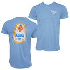Authentic Natural Light shirt showing off logos on the front and back of the tee. This men's shirt comes in light blue and is made of a cotton/poly blend. Officially licensed.