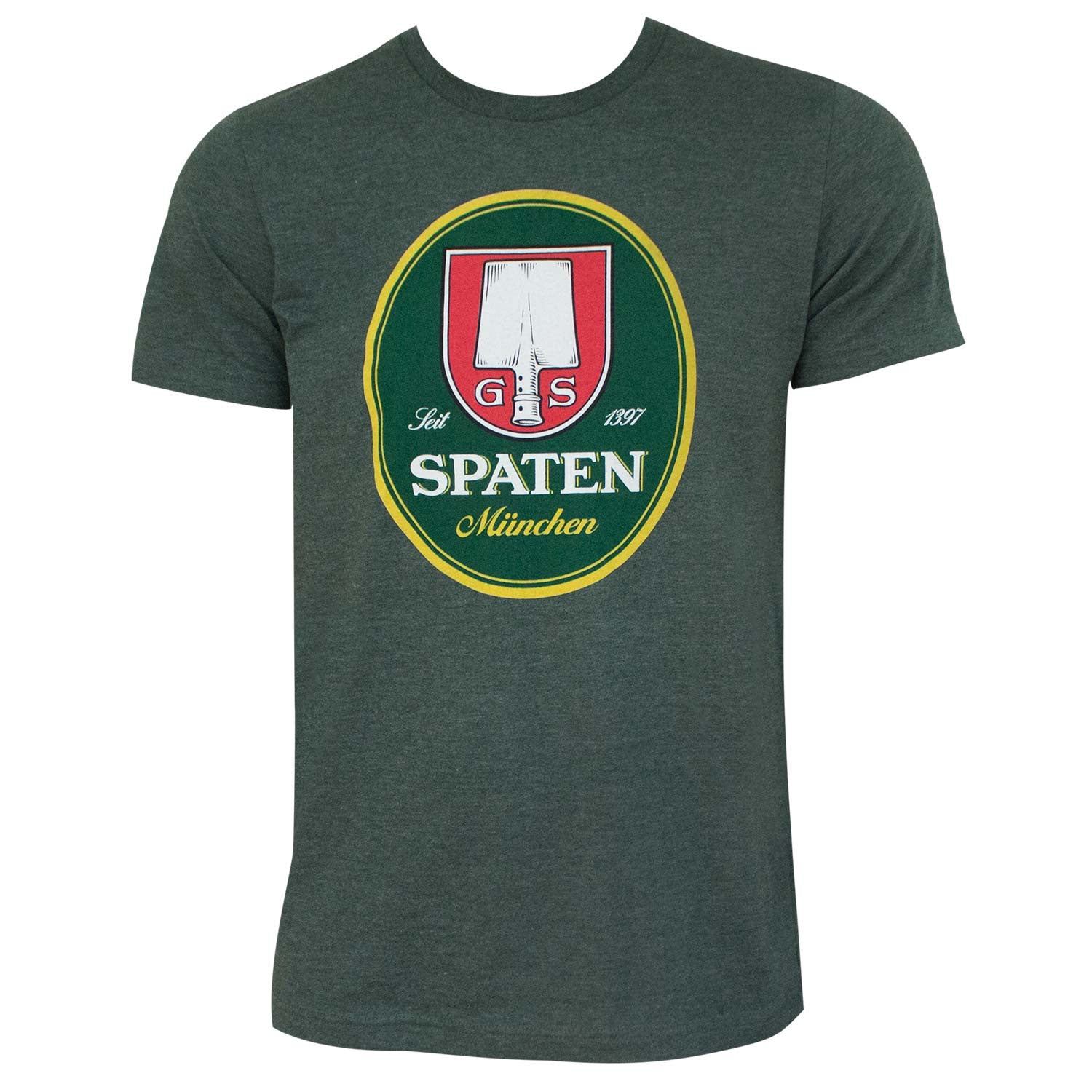 Men's forest green Spaten t-shirt. Made from a cotton/poly blend, this tee features the "Spaten" logo on the front. Officially licensed.