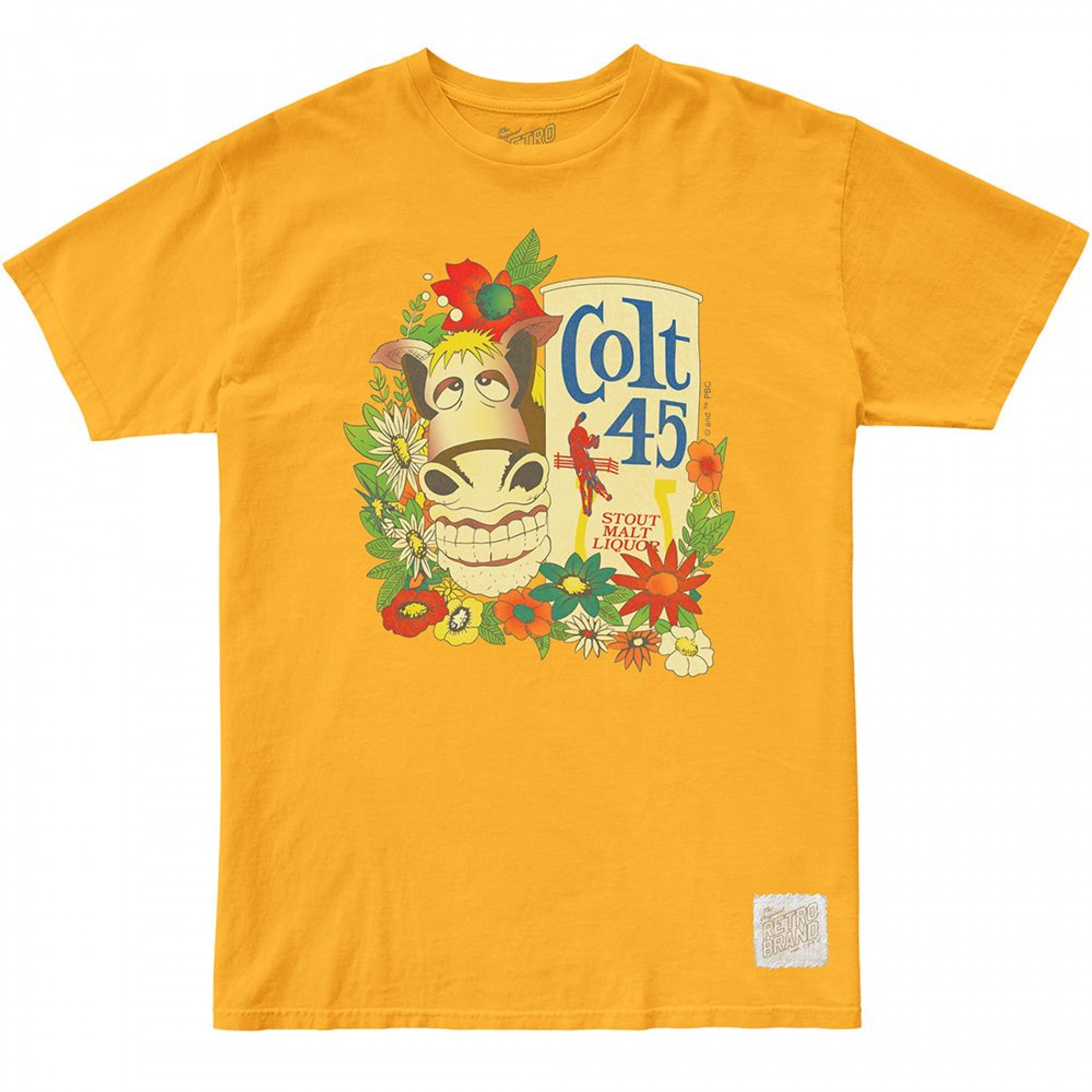 Officially licensed Colt 45 Spicoli Vintage Florals T-Shirt. This yellow "Colt 45" t-shirt is made from cotton and features a classic "Colt 45 Spicoli Vintage Florals" logo design printed on the front.