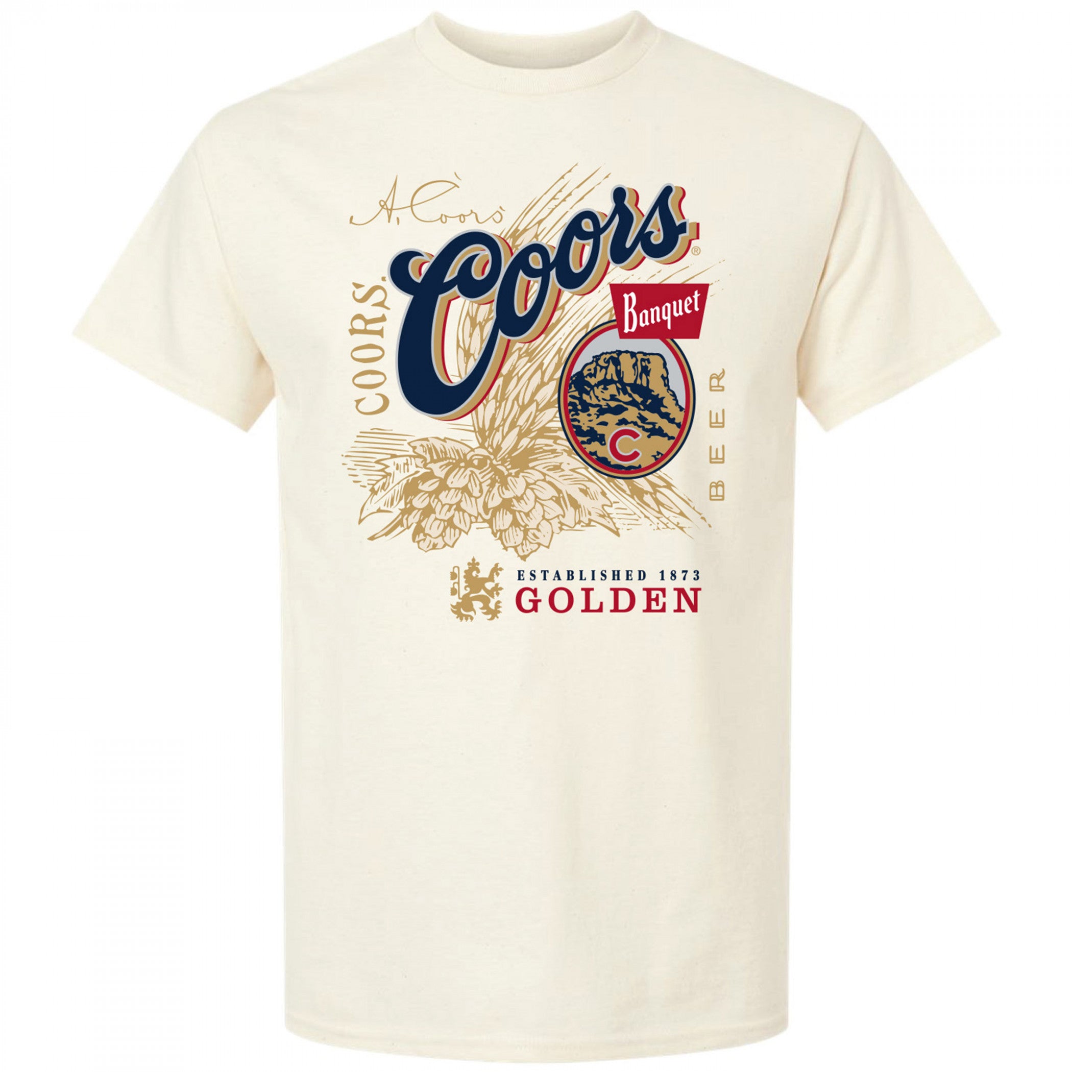 Officially licensed Coors Banquet Heritage T-Shirt. This beige "Coors Banquet" t-shirt is made from cotton and features a "Coors Banquet Heritage" logo design printed on the front.