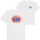 Officially licensed New Belgium Front and Back Print T-Shirt. This "New Belgium" white t-shirt is made from cotton and features the brewery's logo on the front and a vibrant bike-and-sunset design across the back.